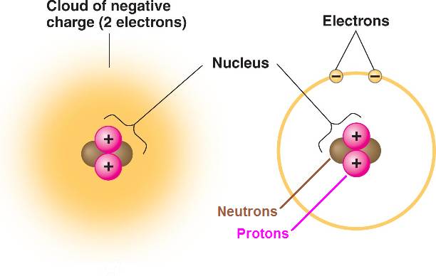 the nucleus contains 2 neutrons which have no electrical charge,