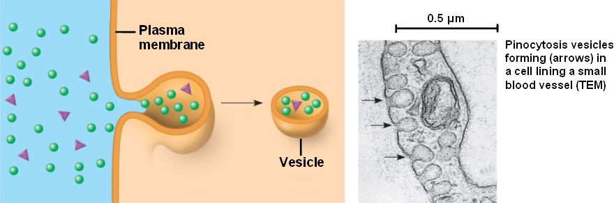 Pinocytosis (cell drinking). The cell "gulps" droplets
