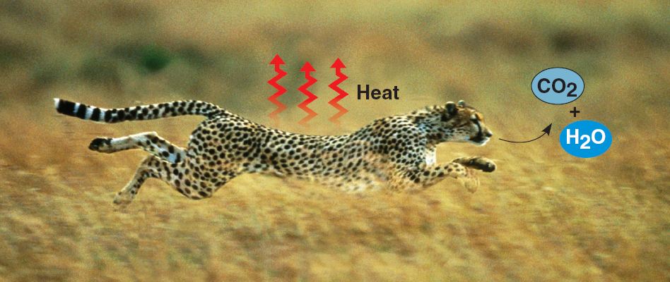 For example, entropy is added to the cheetah's surroundings in the form of heat