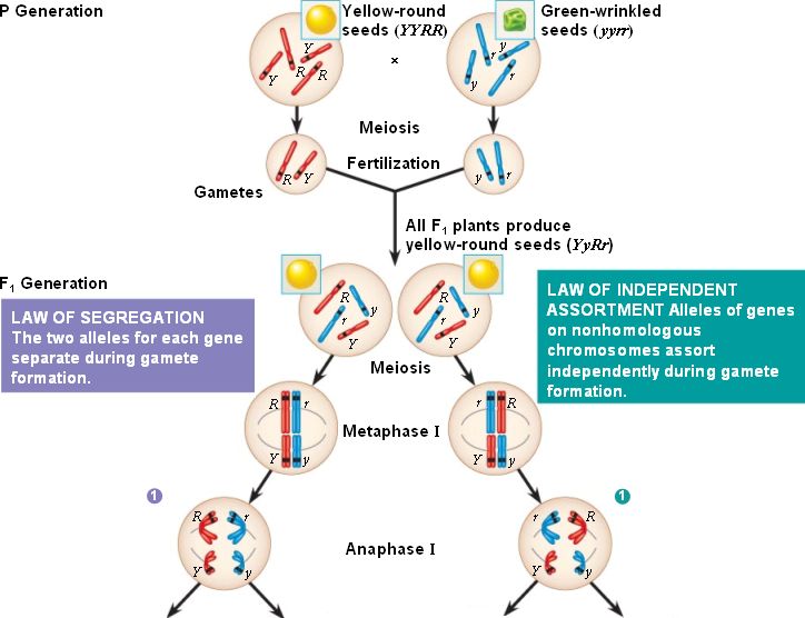 The arrangement of chromosomes at metaphase I and their separation in anaphase I account for the segregation and independent assortment of alleles.
