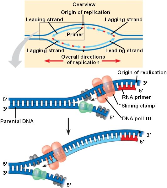 On the leading strand (where the 3' end of the new strand proceeds into the fork), DNA synthesis can proceed continuously.