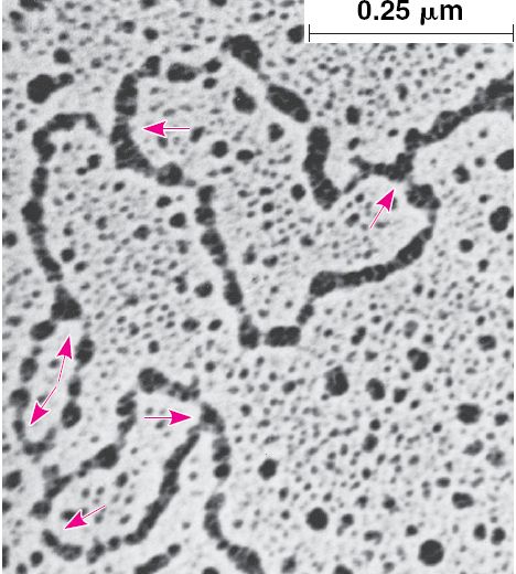 are visible along the DNA of a cultured Chinese hamster cell.