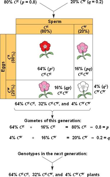 where p is the dominant allele frequency and q is the recessive allele frequency.