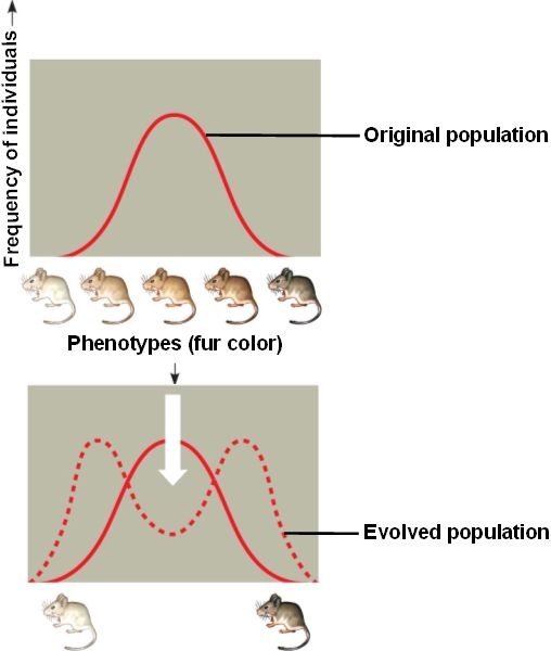 These mice have colonized a patchy habitat made up of light and dark rocks, with the result that mice of an intermediate color are at a disadvantage.