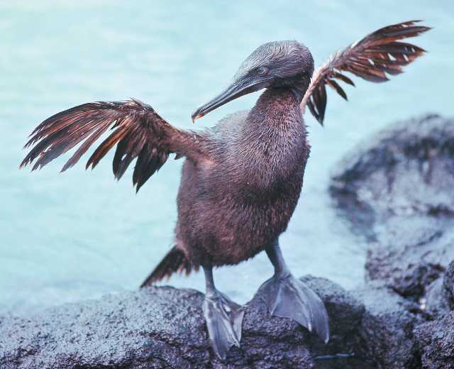 How did the flightless cormorant (Nannopterum harrisi) come to reside isolated Galapagos Islands?