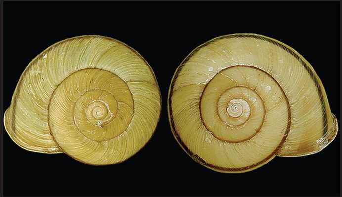 A mutation in one gene causes the shell of this snail to spiral in the opposite direction from wild type.