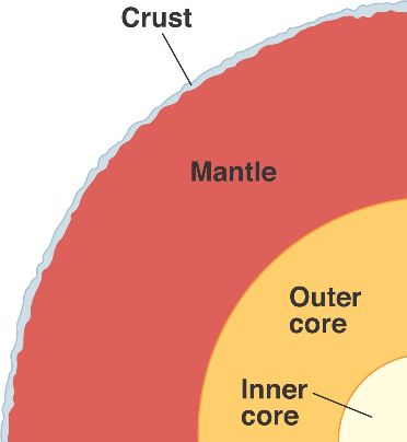 The upper surface of the Earth is a thin layer (5 to 70 km) of