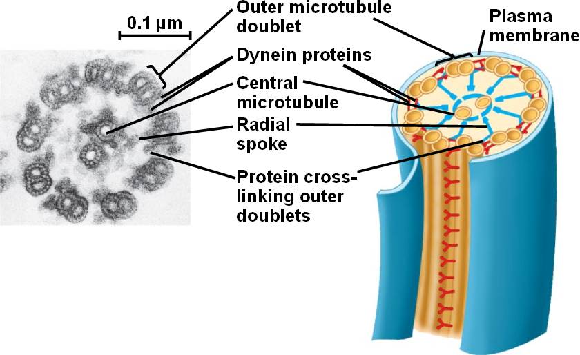 The rod lies alongside the 9 + 2 ring of microtubules found in all eukaryotic