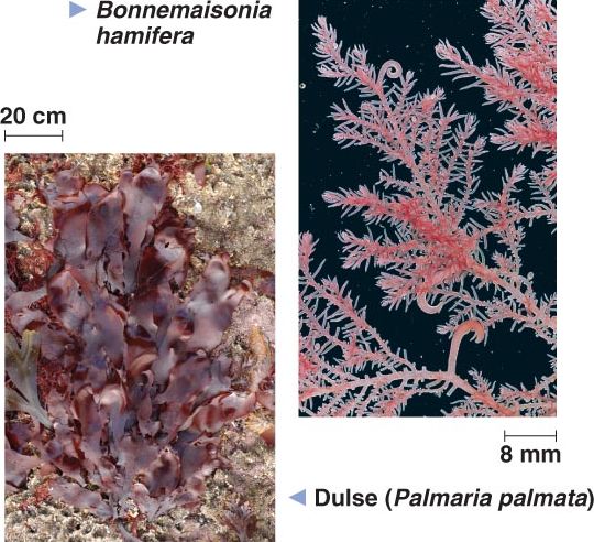 Some, such as Bonnemaisonia hamifera, have a filamentous form, while Dulse are "leafy" and edible.
