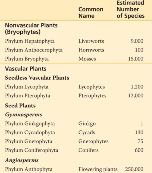 Anthophyta (or Angiosperms, the flowering plants) is the most recently evolved, and most diverse, of the 10 plant phyla.