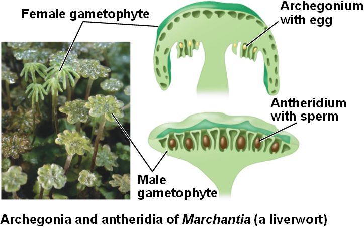 The large, "leafy" photosynthetic gametophytes of a moss contain gametangia.