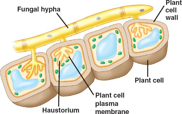 Mutualistic fungi grow specialized hyphae called