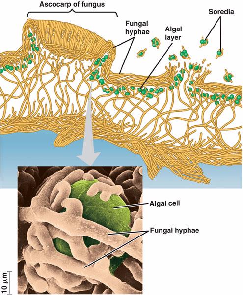 microorganisms held in a mass of fungal hyphae.